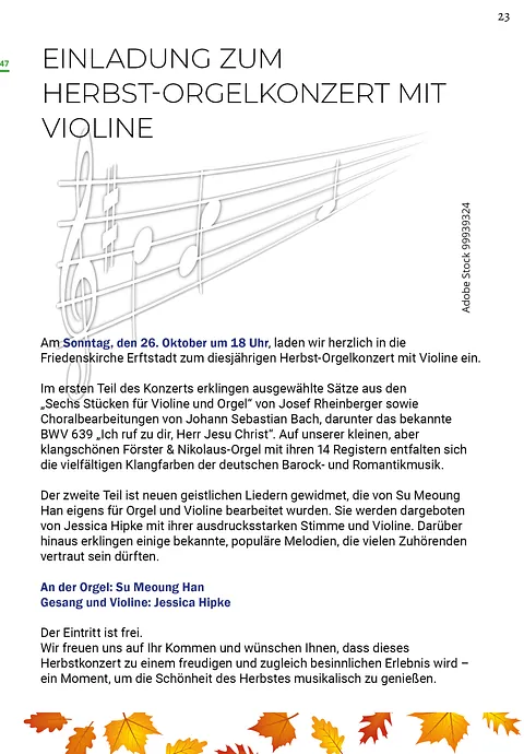Herbst-Orgelkonzert mit Violine